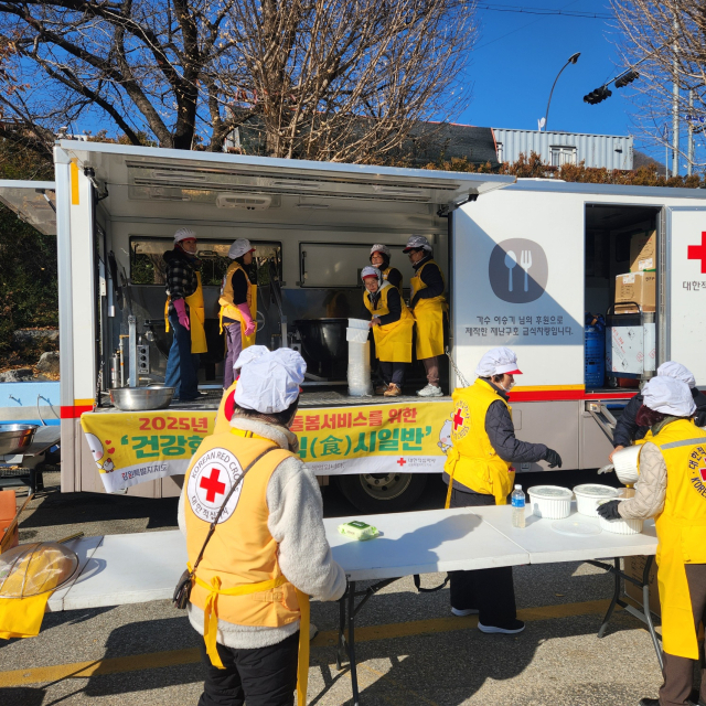 대한적십자사봉사회 정선군협의회(회장: 최미숙)는 19일 정선공설운동장 주차장에서 지역 독거노인 및 지역취약계층 200가구에게 강원적십자사 이동급식차량을 이용해 삼계탕을 전달했다.