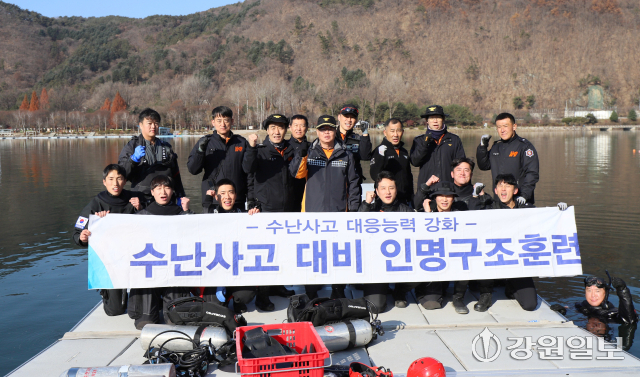 【화천】화천소방서는 19일 북한강에서 동계 수난사고 대비 특별구조훈련을 실시했다.