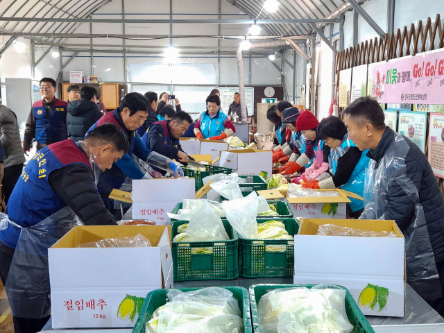 양구군재향군인회와 재향군인회여성회는 19일 오전 양구읍 고대리 일원에서 6·25 참전용사와 보훈회원을 위한 ‘사랑·행복·나눔 김장봉사’를 진행했다. 이날 서흥원 양구군수도 참석해 따뜻한 마음을 함께 나눴다.