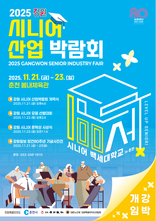 강원특별자치도, 춘천시, 대한노인회 강원특별자치도연합회와 올해 창간 80주년을 맞은 강원일보가 마련한 이번 박람회는 이날 오후 4시 개막식을 시작으로 23일까지 3일 간 열린다.
