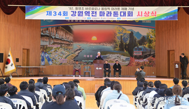 '92 황영조 바르셀로나 올림픽 마라톤 제패기념 제34회 강원역전마라톤대회 시상식이 21일 고성실내체육관에서 열려 최용수 도육상연맹 회장, 김석만 강원일보 미래사업본부장과 1부 우승 속초시, 2부 우승 영월군을 비롯한 참가 선수들이 기념사진을 찍고 있다. 고성=권태명기자'92 황영조 바르셀로나 올림픽 마라톤 제패기념 제34회 강원역전마라톤대회 시상식이 21일 고성실내체육관에서 열려 최용수 도육상연맹 회장, 김석만 강원일보 미래사업본부장과 1부 우승 속초시, 2부 우승 영월군을 비롯한 참가 선수들이 참석한 가운데 열렸다. 고성=권태명기자'92 황영조 바르셀로나 올림픽 마라톤 제패기념 제34회 강원역전마라톤대회 시상식이 21일 고성실내체육관에서 열려 최용수 도육상연맹 회장, 김석만 강원일보 미래사업본부장과 1부 우승 속초시, 2부 우승 영월군을 비롯한 참가 선수들이 참석한 가운데 열렸다. 고성=권태명기자'92 황영조 바르셀로나 올림픽 마라톤 제패기념 제34회 강원역전마라톤대회 시상식이 21일 고성실내체육관에서 열려 최용수 도육상연맹 회장, 김석만 강원일보 미래사업본부장과 1부 우승 속초시, 2부 우승 영월군을 비롯한 참가 선수들이 참석한 가운데 열렸다. 고성=권태명기자'92 황영조 바르셀로나 올림픽 마라톤 제패기념 제34회 강원역전마라톤대회 시상식이 21일 고성실내체육관에서 열려 최용수 도육상연맹 회장, 김석만 강원일보 미래사업본부장과 1부 우승 속초시, 2부 우승 영월군을 비롯한 참가 선수들이 참석한 가운데 열렸다. 고성=권태명기자'92 황영조 바르셀로나 올림픽 마라톤 제패기념 제34회 강원역전마라톤대회 시상식이 21일 고성실내체육관에서 열려 최용수 도육상연맹 회장, 김석만 강원일보 미래사업본부장과 1부 우승 속초시, 2부 우승 영월군을 비롯한 참가 선수들이 참석한 가운데 열렸다. 고성=권태명기자'92 황영조 바르셀로나 올림픽 마라톤 제패기념 제34회 강원역전마라톤대회 시상식이 21일 고성실내체육관에서 열려 1부 우승 속초시 선수들이 기념사진을 찍고 있다. 고성=권태명기자'92 황영조 바르셀로나 올림픽 마라톤 제패기념 제34회 강원역전마라톤대회 시상식이 21일 고성실내체육관에서 열려 2부 우승 영월군 선수들이 기념사진을 찍고 있다. 고성=권태명기자김윤정(삼척시)-황영조상장문성(영월)-황영조상송준환(철원군)-최우수은창희(삼척시)-최우수윤서진(양양군)-신인상이은호(양양군)-신인상