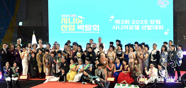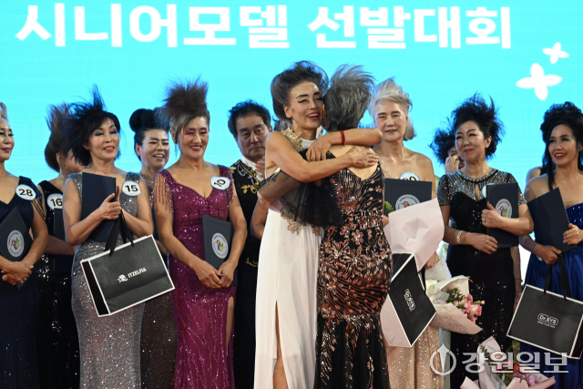 2025 강원시니어모델선발대회가 22일 춘천봄내체육관에서 열려 대회에 참가한 시니어 모델 수상자들과 이건실 대한노인회 강원특별자치도연합회장, 김석만 강원일보 미래사업본부장, 최성현 강원관광재단 대표이사 등 심사위원 및 관계자들이 대회를 마친 후 함께 기념촬영을 하고 있다. 박승선기자2025 강원시니어모델선발대회가 22일 춘천봄내체육관에서 열린 가운데 대상을 수상한 최계자 참가자가 수상이 발표되자 동료 참가자들과 기쁨을 나누고 있다. 박승선기자2025 강원시니어모델선발대회가 22일 춘천봄내체육관에서 열린 가운데 대상을 수상한 최계자 참가자가 전 대회 대상 수상자로부터 왕관을 전달 받고 있다. 박승선기자2025 강원시니어모델선발대회가 22일 춘천봄내체육관에서 열려 대회에 참가한 시니어 모델 수상자들과 이건실 대한노인회 강원특별자치도연합회장, 김석만 강원일보 미래사업본부장 등이 함께 기념촬영을 하고 있다. 박승선기자