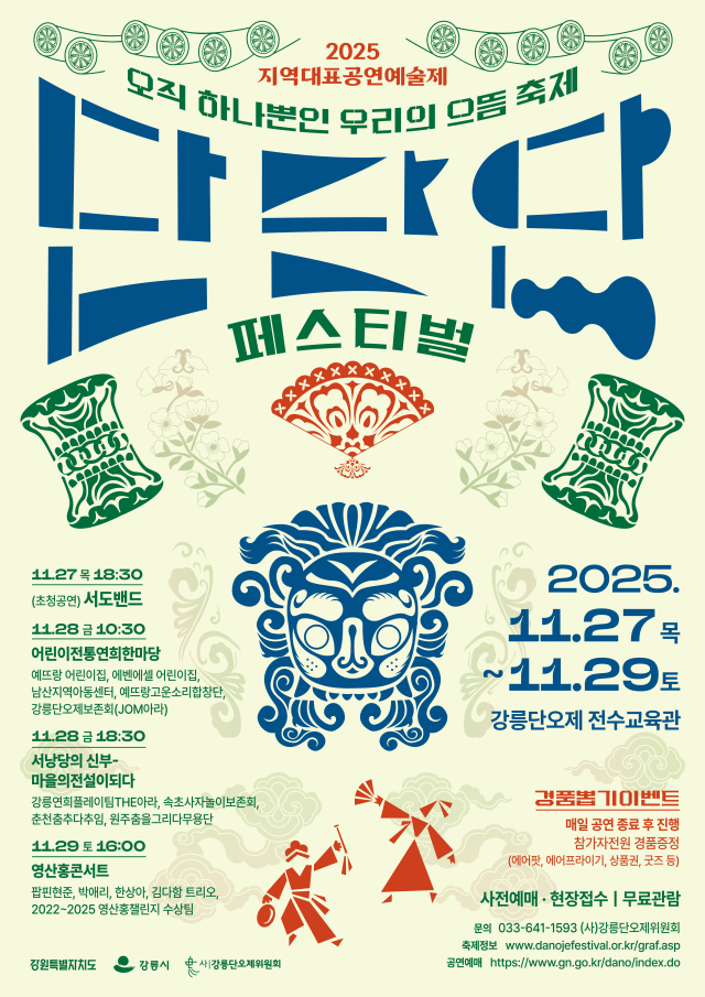 【강릉】강릉단오제위원회는 27일부터 29일까지 강릉단오제전수교육관 일원에서 ‘2025 단단단페스티벌’을 개최한다.