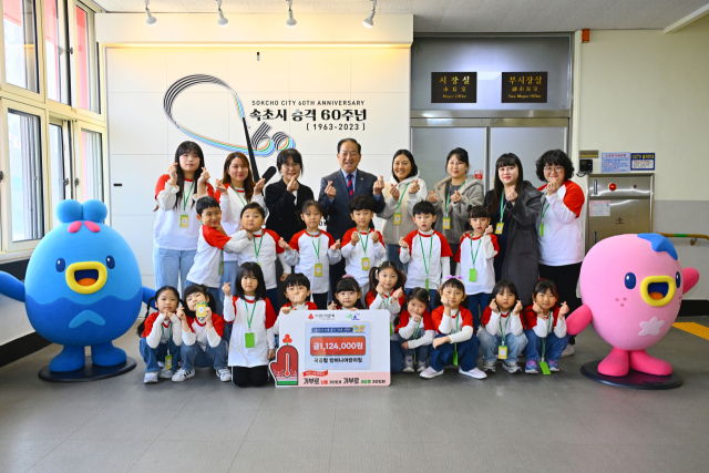 국공립 밤비니어린이집(원장:전은주) 원생 일동은 24일 속초시청을 방문, 자체 플리마켓 운영으로 발생한 수익금 112만4,000원을 지역 내 취약계층 지원을 위한 성금으로 기탁했다.