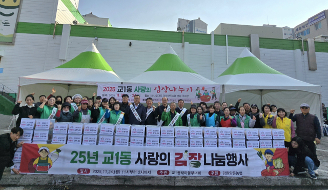 교1동 새마을부녀회(회장:심정란)은 24일 강원양돈농협(조합장:최덕식)의 후원을 받아 ‘2025 사랑의 김장 나눔’ 행사를 진행하고, 회원들이 직접 담근 김장김치를 관내 취약계층에 전달했다.