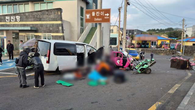 제주 우도에서 60대 관광객이 운전하던 렌터카 승합차가 갑자기 질주하면서 3명이 숨지고 10명이 다치는 참변이 발생했다.