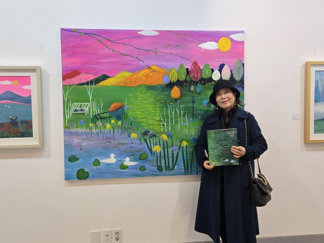 박 작가는 풍경을 구체적인 사실로 옮기기보다 감정과 기억, 유년의 감수성을 중심에 두고 작품에 담아낸다. 작품 속에는 밝은 햇살 아래 계절마다 다른 꽃과 나무, 푸른 연못, 아기자기한 마을이 한 장면처럼 펼쳐져 관람객에게 동화 같은 평화로움을 전한다.