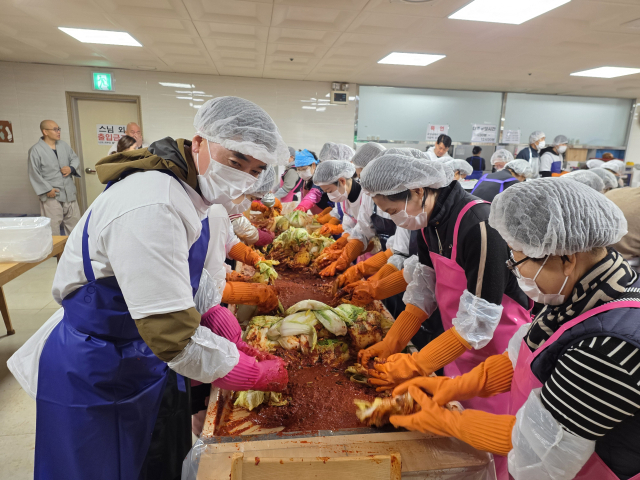 양양 낙산사 김장담그기 행사가 25일 공양실에서 한명진 속초양양교육장, 원현순 김진태 지사 부인, 한미숙 신경호 교육감 부인, 김난주 이양수 의원 부인 등을 비롯해 속초양양교육지원청 직원, 신도 등 참석한 가운데 열렸다.