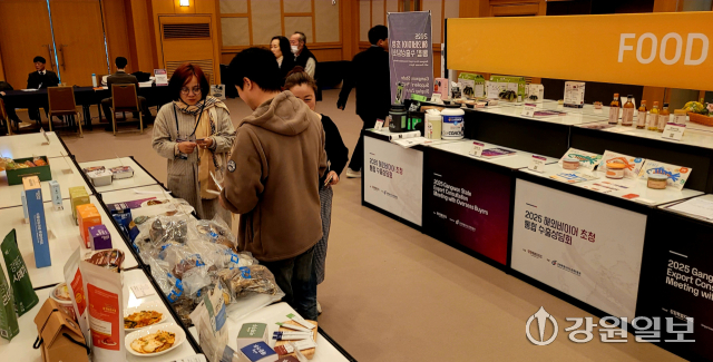 강원특별자치도가 마련한 '해외바이어 초청 통합 수출상담회'가 26일 원주 오크밸리에서 열렸다. 이날 상담회에는 식품, 뷰티, 의료 등 다양한 분야의 도내 기업 101개사와 베트남, 미국, 중국, 일본, 말레이시아, 러시아, 캐나다 등 19개국의 55개사 바이어가 참가해 열띤 상담을 이어갔다.