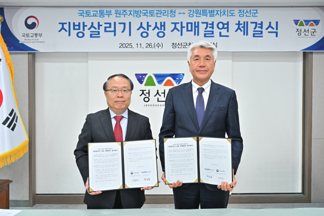 【정선】 정선군과 국토교통부 원주지방국토관리청이 ‘지방살리기 상생 자매결연 업무협약’을 체결했다.