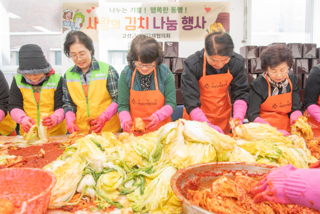 고성군여성단체협의회(회장:김옥선)는 26일 고성종합체육관 식당동에서 함명준 고성군수와 회원 등이 참여한 가운데 지역 내 불우이웃 및 독거노인 등에 전달하기 위한 사랑의 김치 나눔 행사를 개최했다.