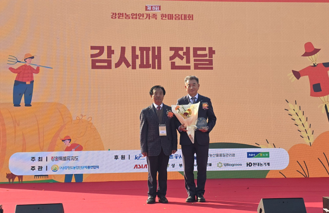 한국농어촌공사 강원지역본부(본부장:김명일)는 26일 강원특별자치도 농업인단체회관에서 열린 ‘제8회 강원농업인가족 한마음대회’에 참가해 우수 농업인 2인에게 표창패를 수여하고, 강원도농업인단체총연합회(회장:이재석)으로부터 감사패를 수상하는 등 농업인들의 노고에 감사를 전했다.