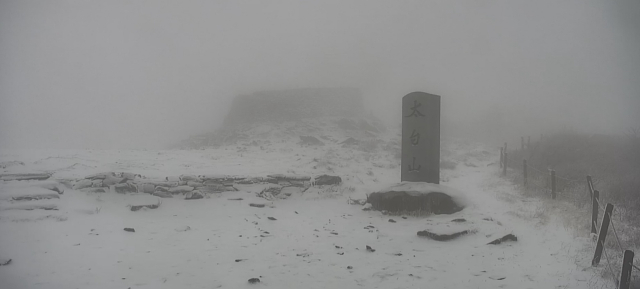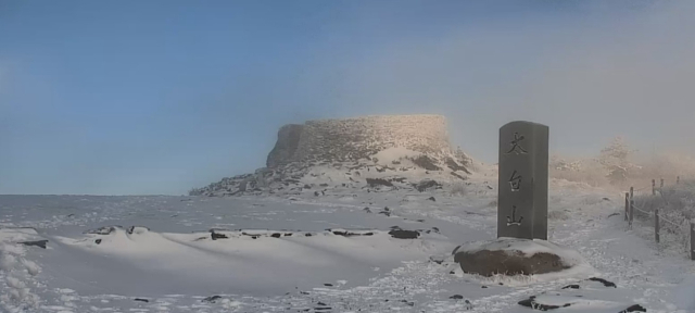 태백산 천제단이 지난 25일부터 내린 눈으로 하얗게 뒤덮였다. 국립공원공단 태백산국립공원사무소에 따르면 지난 26일 오전 8시 기준 적설량은 7.4㎝다. 태백을 비롯한 강원산지에는 27일 대설 예비 특보가 발효됐다. 사진=국립공원공단 태백산국립공원사무소 제공.