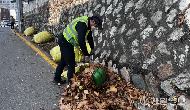 원주시 우산동 일대를 청소하는 환경미화원 조모(54)씨는 “요즘이 낙엽 때문에 1년 중 가장 힘든 시기”라며 “평소보다 작업량은 3배 이상 늘었지만 인력은 계속 줄어들어 손목과 허리가 아픈 건 일상이 됐다”고 토로했다.