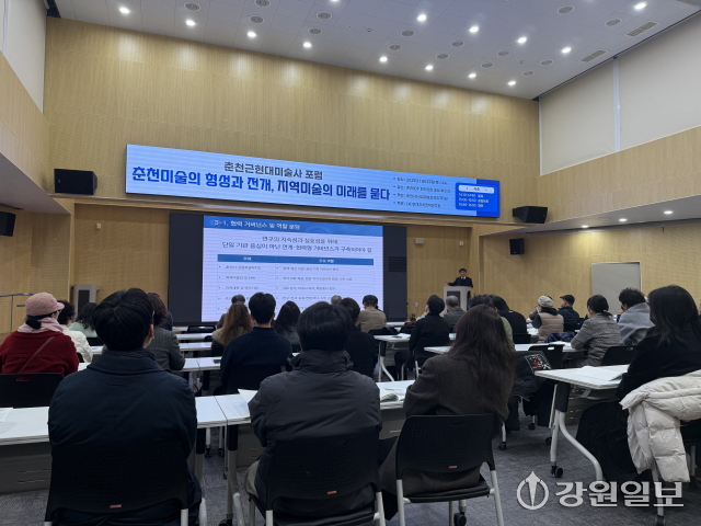 이어진 포럼에서는 김현철 (사)미래자치정책연구원 선임연구원이 ‘춘천미술가 편람 구축’을, 정경숙 국가유산청 무형유산감정위원이 ‘춘천 근현대미술의 형성과 전개’를 주제로 각각 발제했다. 종합토론에서는 신철균 강원대 미술학과 명예교수가 좌장을 맡고 박응주 미술비평가, 박명옥 춘천민족미술인협회장, 전태원 춘천미술협회 자문위원 등이 참여해 지역 미술사의 체계적 기록·정립 방안과 시립미술관 건립 필요성을 논의했다.