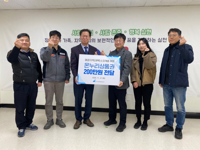 한국광해광업공단(코미르)은 27일 태백장애인종합복지관(관장:최중범)을 방문, 200만원 상당의 온누리상품권을 전달했다.