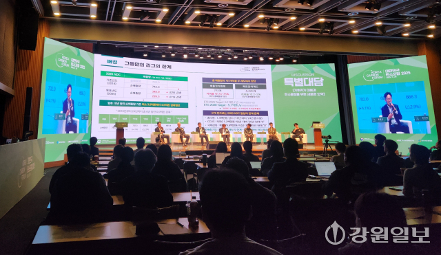 △이상협 국가녹색기술연구소장=“파리협정 이후 기후대응은 국가 간 이해관계가 얽힌 복합적 전략 게임으로 변했다. 제조업·수출 중심 국가인 한국은 배출량 비중이 1.3%에 불과하지만 재생에너지 잠재량이 낮고 산업 의존도가 높아 글로벌 기준을 단순히 따라가기 어려운 구조라며 ‘한국형 탄소중립 모델’이 필요하다고 강조했다. 1.5℃ 목표는 인정하지만, AI(인공지능)·기술 변화 속에서 한국이 강점을 가진 분야를 중심으로 ‘미래 제조업형 탄소중립’ 모델을 만들어야 한다.”