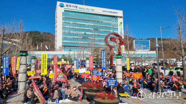 원주 상수원보호구역 해제 횡성군대책위원회(이하 대책위)는 28일 원주시청 앞에서 원주시의 상수원보호구역 해제 협력을 촉구하는 총궐기대회를 개최했다.