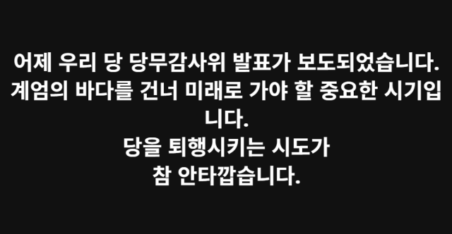 당무감사위는 지난 28일 보도자료를 통해 “2024년 11월 5일 전후로 발생한 당원 게시판 논란과 이후 조치 전반에 대해 조사 절차를 개시하기로 의결했다”고 밝혔다.