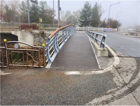 군은 이번 공사를 통해 길이 18.7m, 폭 2.4m 규모의 인도교를 신설했다. 구조물은 통행 안전성과 내구성을 확보할 수 있도록 설계·시공됐으며 난간을 설치해 보행자의 추락 위험을 방지하고 더욱 쾌적하고 안전한 보행로를 조성했다.
