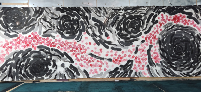 검정의 강렬한 선과 매화꽃의 화사한 색감은 대비를 이루며 시각적 긴장감 속에 생동하는 조화를 만들어낸다. 이는 마치 이른 봄 땅속에서 생명이 움트는 순간을 연상시키며 선은 자연의 순리를 따라 흐르고 꽃은 그 생명의 발현을 축복하듯 작품 속에서 떠오른다. 꽃과 선은 생명의 역동성과 봄의 에너지를 담아내며 존재의 환희를 보여준다.