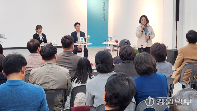 이날 북 콘서트'에는 최혁진(비례·무소속) 국회의원과 곽문근 시의회 부의장, 여준성 더불어민주당 원주갑 지역위원장, 고창영 원주문인협회장, 권오영 시인, 시민 등이 참석해 축해했다.