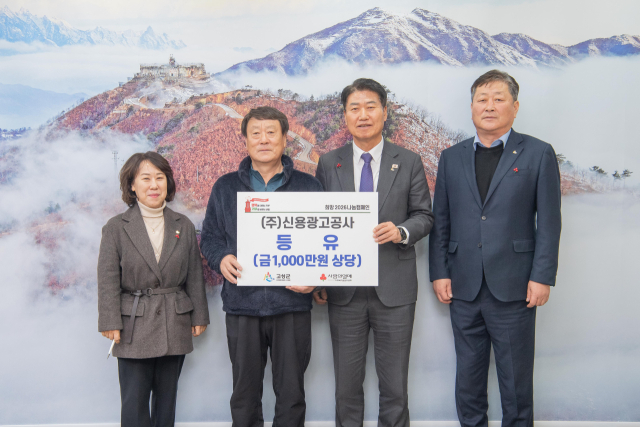 ㈜신용광고공사(대표:김기덕)는 1일 고성군청 군수 집무실에서 저소득층 가구 지원을 위한 1,000만원 상당의 등유를 함명준 군수에게 기탁했다.