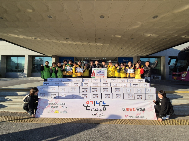 동해시자원봉사센터와 국민건강보험공단은 최근 국민건강보험공단 사회공헌사업 ‘하늘반창고 김장나눔봉사활동’을 통해 김장김치 100박스를 동해시에 기탁했다.