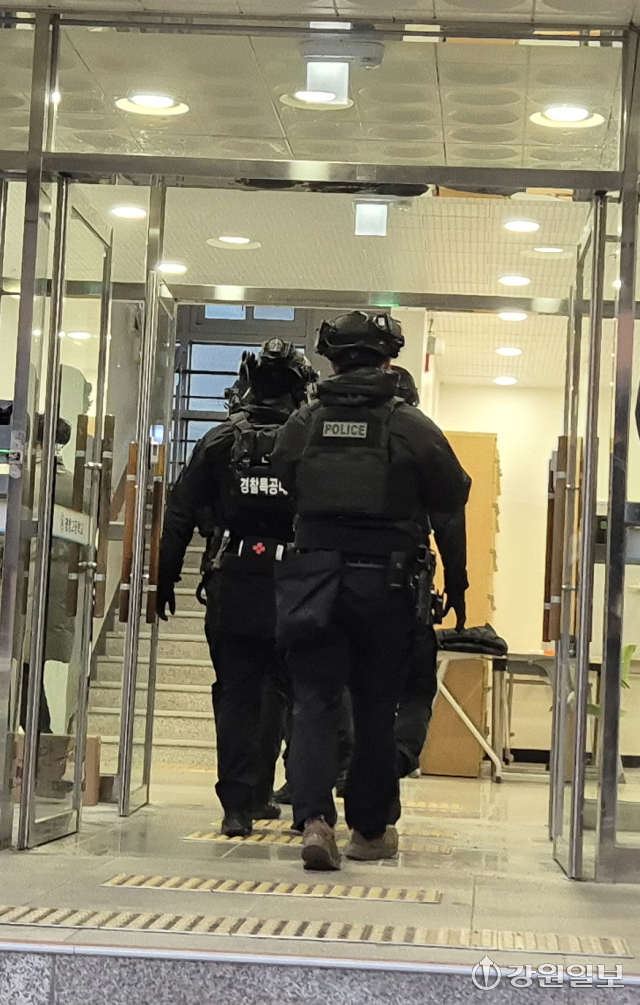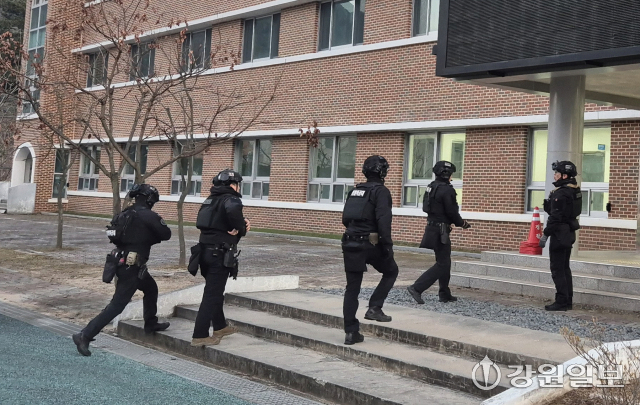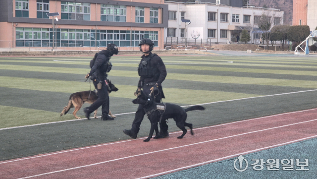 경찰이 기숙사와 학교 일부 구역을 1차 수색한 결과, 폭발물이나 특이사항은 발견되지 않았다. 이어 강원경찰청 특공대가 수색견을 동원해 2차 수색을 진행했지만 발견된 폭발물은 없었다.