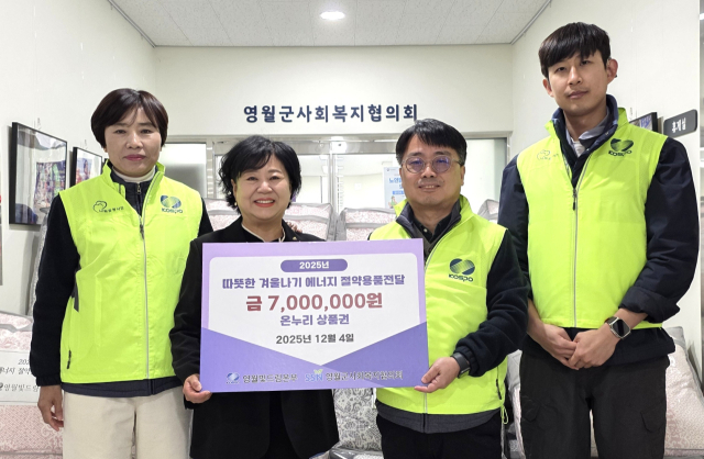 한국남부발전 영월빛드림본부(본부장:유동석)는 4일 영월군사회복지협의회(회장:이규태)를 방문해 저소득 에너지 취약계층을 위해 사용해달라며 온누리상품권 700만원을 기탁했다.