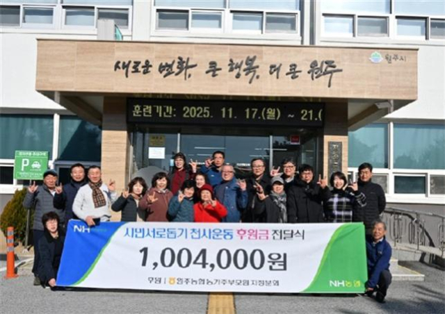 원주농협 농가주부모임 지정분회(분회장:김복순)는 최근 원주시 시민서로돕기 천사운동본부에 원주농협 치악산 고구마축제 수익금 100만4,000원을 후원금으로 전달했다.