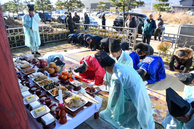 양구 팔효자 제례가 4일 양구읍 송청리 팔효자각에서 열렸다. 이날 서흥원 양구군수(초헌관), 정창수 양구군의장(아헌관), 박광준 팔효자 후손(종헌관)을 비롯해 향교 유림과 기관·사회단체장, 관계자들이 참석해 제례를 봉행했다.