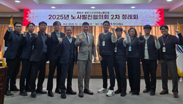 원주시와 시청 공무원노조(원공노)는 4일 시청 중회의실에서 김문기 부시장과 문성호 위원장 등이 참석한 가운데 노사발전협의회를 열고 직원 복지·복무 관련 개선안에 대해 의견을 교환했다. 원공노는 재난안전상황실 근무자와 농업기계팀 농번기 특별근무 처우 개선, 당직 제도 개선 등을 촉구했다.