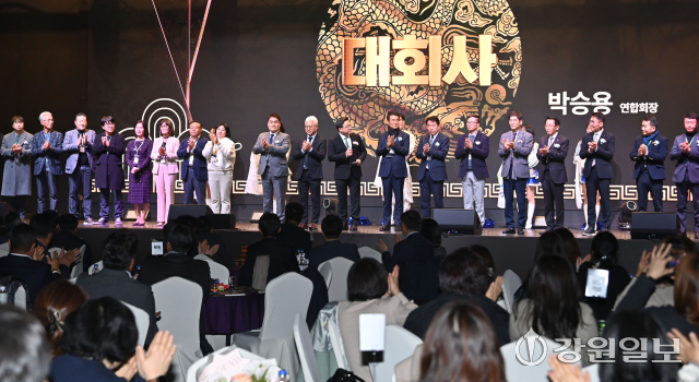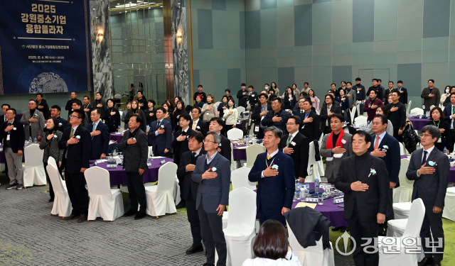 사단법인 중소기업융합강원연합회(회장:박승용)가 주최한 '2025강원중소기업 융합플라자' 행사가 4일 홍천 소노캄 비발디파크에서 김진태 강원특별자치도지사, 박진오 강원일보사장, 신영재 홍천군수, 노정협 중소기업융합중앙회 상임부회장, 박순홍 강원지방중소벤처기업청장, 이경원 강원지방조달청장, 정지창 중소벤처기업진흥공단 강원지역본부장, 고광만 춘천상공회의소회장 등이 참석한 가운데 열렸다. 홍천=박승선기자