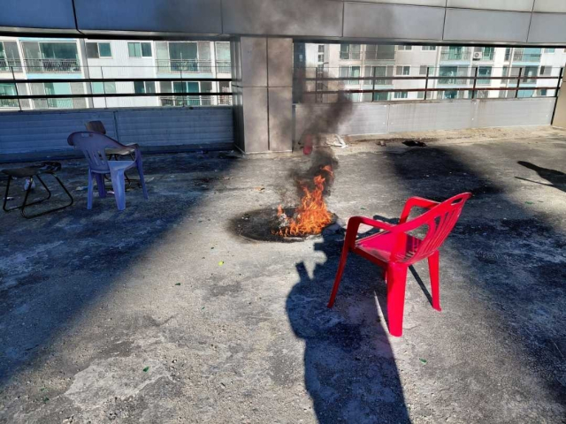 “건물 옥상에서 검은 연기가 올라온다”는 신고를 받고 출동한 소방 당국은 10여분 만에 불을 껐다. 이 화재로 인명피해는 없었다.