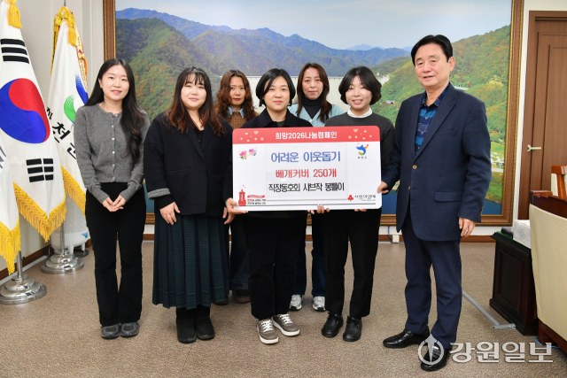 화천군청 직장동호회 ‘사브작 봉틀이’ 회원들은 5일 직접 만든 베개 커버 250개를 어려운 이웃들에게 전달해 달라며 최문순 군수에게 기탁했다.