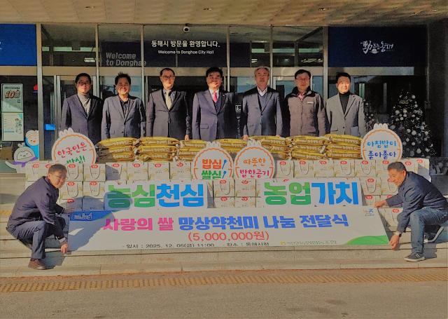 묵호농협(조합장:장상억)과 NH농협 동해시지부(지부장:김종곤)는 5일 동해시를 방문, ‘사랑의 쌀 망상약천미 나눔 행사’를 갖고 소외된 이웃들이 따뜻한 겨울을 보낼 수 있도록 10㎏ 70포, 4㎏ 140포(500만원 상당)를 기탁했다.