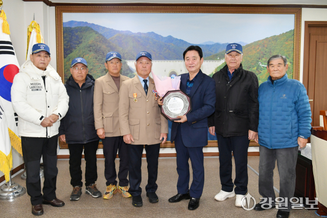 고엽제전우회 화천군지회(지회장:오기동)은 5일 화천군을 방문, 고엽제 전우회 활동에 전폭적으로 지원해 준 최문순 군수에게 감사패를 전달했다.