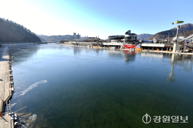 【화천】화천산천어축제가 열리는 화천천의 결빙이 예년보다 이른 시기에 시작됐다.