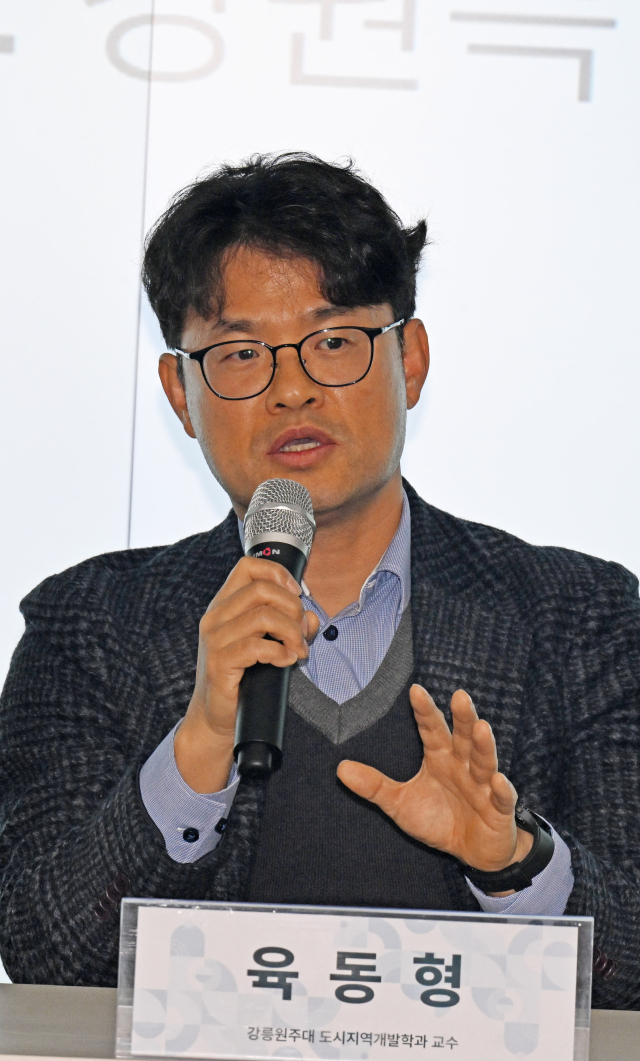 육동형 강릉원주대 도시지역개발학과 교수=“과거 영동고속도로가 자원 수송용 산업 도로였다면, 지금은 관광객을 위한 도로로 바뀌었다. 관광 거점으로 수요가 몰리면서 정작 주민들은 7번 국도 등 생활도로에서 심각한 체증을 겪는다. 분석 결과 강원도 도로 통행의 약 30%가 타 지역에서 유입된 ‘지역 간 통행’으로, 강원도 도로가 지방도로가 아니라 국가 중요 시설과 관광지를 잇는 실질적인 ‘국가기간망’이라는 뜻이다. 따라서 지자체 차원 문제가 아니라 국가가 책임지고 관리해야 한다는 논리로 접근해야 예타 문제도 풀 수 있다.”