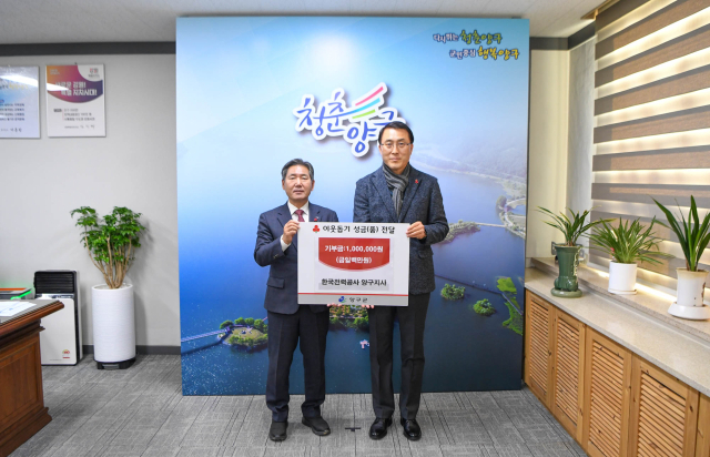한국전력공사 양구지사(지사장:정종성)는 8일 양구군청을 방문해 이웃돕기 성금 100만원을 서흥원 양구군수에게 전달했다.