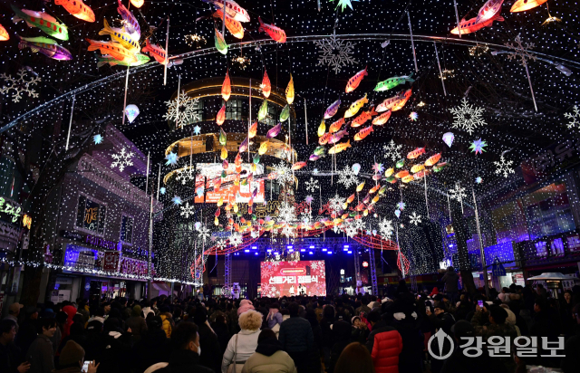 선등거리에는 지난 1년 간 화천지역 어르신들이 손수 제작한 형형색색의 산천어등과 LED 조명 수만여 개가 설치됐다.