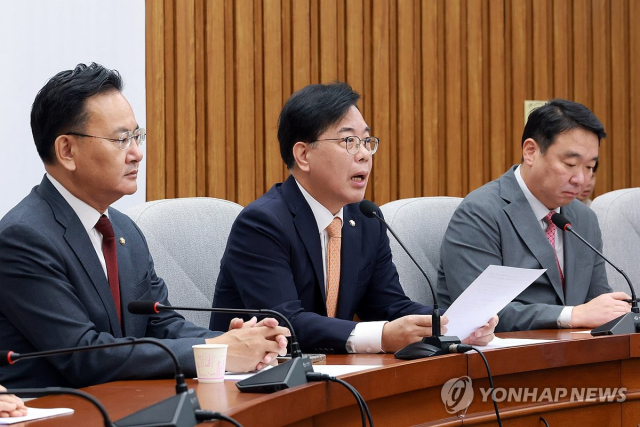 송언석 원내대표는 이날 국회에서 열린 원내대책회의에서 "어제 민 특검은 통일교가 민주당에 정치 자금을 제공한 건은 특검법상 수사 대상이 아니라고 입장을 밝혔다"며 "손바닥으로 하늘을 가려보겠다는 터무니없는 망발"이라고 비판했다.