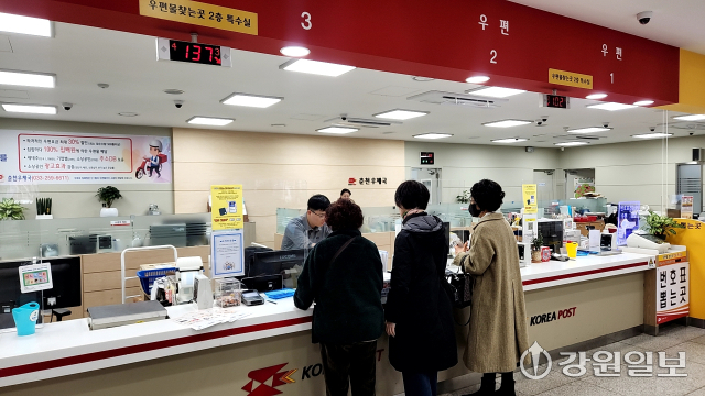 전국우정노동조합 강원지역본부 관계자는 “연말연시에는 기업, 관계기관, 지인 사이 5㎏이상 초과하는 고중량 소포를 배달하는 경우가 잦고 또 1~2월에는 설명절 우편물 특별소통기간으로 비상근무에도 돌입할텐데 한시적이지만 단기인력을 충원해야 한다”고 말했다.