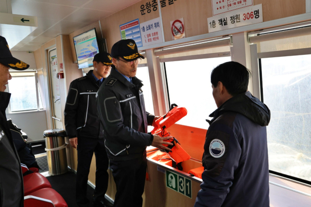 이어 독도와 울릉도를 운항하는 여객선에 탑승해 구명조끼, 비상구조선, 구명벌 등 안전장비를 중점 점검했다.