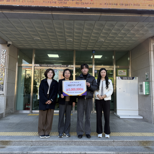 해원전기 주식회사(대표:김주정)는 9일 강남동 주민센터(동장:김은숙)를 방문해 어려운 이웃돕기 성금 500만 원을 기탁하며, 지난 2021년부터 5년째 이어온 나눔을 올해도 실천했다.