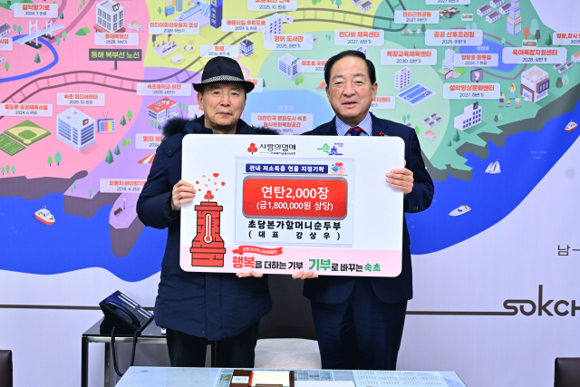 속초 초당본가할머니순두부(대표:강상우)는 10일 속초시청을 방문, 겨울철 난방에 어려움을 겪는 취약계층을 위한 180만원 상당의 연탄 2,000장을 지정 기탁했다.