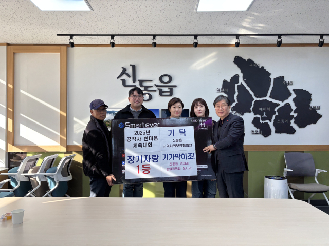 정선군 신동읍·경제과·농업정책과·도시과로 구성된 ‘기가막히조팀’이 지난달 7일 열린 2025 정선군 공직자 한마음 체육대회에서 장기자랑 1등을 차지하고 수여받은 100만원 상당의 스마트TV를 10일 신동읍 지역사회보장협의체에 기탁했다.