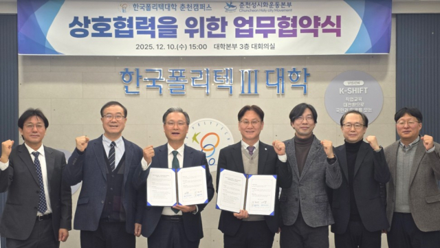 한국폴리텍Ⅲ대학(학장:지경배) 춘천캠퍼스는 10일 춘천성시화운동본부와 지역 청·장년의 직업역량 강화를 중심으로 한 상호 협력체계 구축 업무협약을 체결했다. 양 기관은 평생직업능력 개발 지원, 공동 교육·체험 프로그램 발굴과 운영 등 유기적인 협력에 나선다.