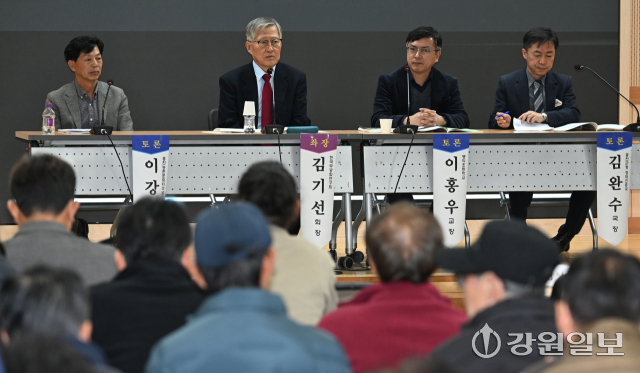 △김기선 한국무궁화연구회 회장(좌장·서울대 명예교수)=“홍천은 무궁화 메카 도시, 무궁화 중심 도시를 넘어 ‘무궁화의 성지’가 돼야 한다. 홍천이 간직한 남궁억 선생의 역사성과 정서를 담은 표현이 필요하다. 남궁억 추모제는 도 단위를 넘어 전국 단위로 격상 돼야 한다. 전국 각지에서 무궁화를 사랑하는 사람들이 오는 추모 행사로 만들어야 한다. 홍천과 무궁화의 연관성에 대한 인지도가 매우 낮다. 무궁화하면 홍천을 떠올 릴 수 있도록 홍보가 확대 돼야 한다. 이번 심포지엄은 열띤 분위기 속에서 열렸다. 무궁화 관련 행사로 전국 지자체를 다녀봤지만, 홍천만큼 주민이나 기관·단체장들의 참여 열기가 높은 지역이 없다. 무궁화가 홍천 속에 자리 잡은 시기를 넘어, 이제는 무궁화 정신과 역사를 전국에 널리 알려나가야 한다.”